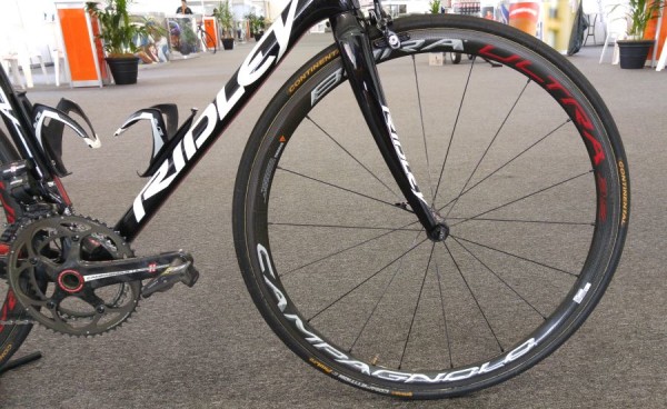 Στην μεσαία τριβή συναντάμε κεραμικά ρουλεμάν της C-Bear ενώ τα φρένα είναι τα Campagnolo Super Record. Η Ridley προς το παρόν έχει επιλέξει να “αφήσει” τα φρένα στις θέσεις όπου τα έχουμε συνηθίσει, κάνοντας την ζωή των μηχανικών λίγο πιο εύκολη κατά την συντήρηση.